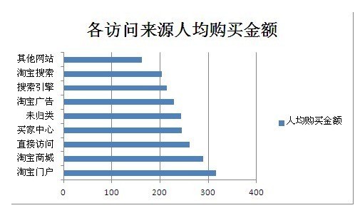 其次,通過(guò)淘寶廣告、搜索等引入的新客也相對(duì)較多,但客單水平就不高。